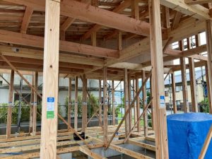 強い雨が降る中、棟上げをしてくださった大工さん達に感謝です。