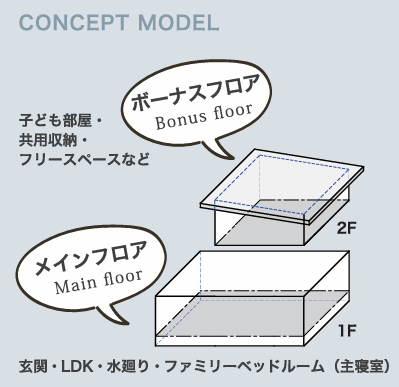 「ほぼ平屋」は、1階に主要な部屋を配置する1階完結型です。