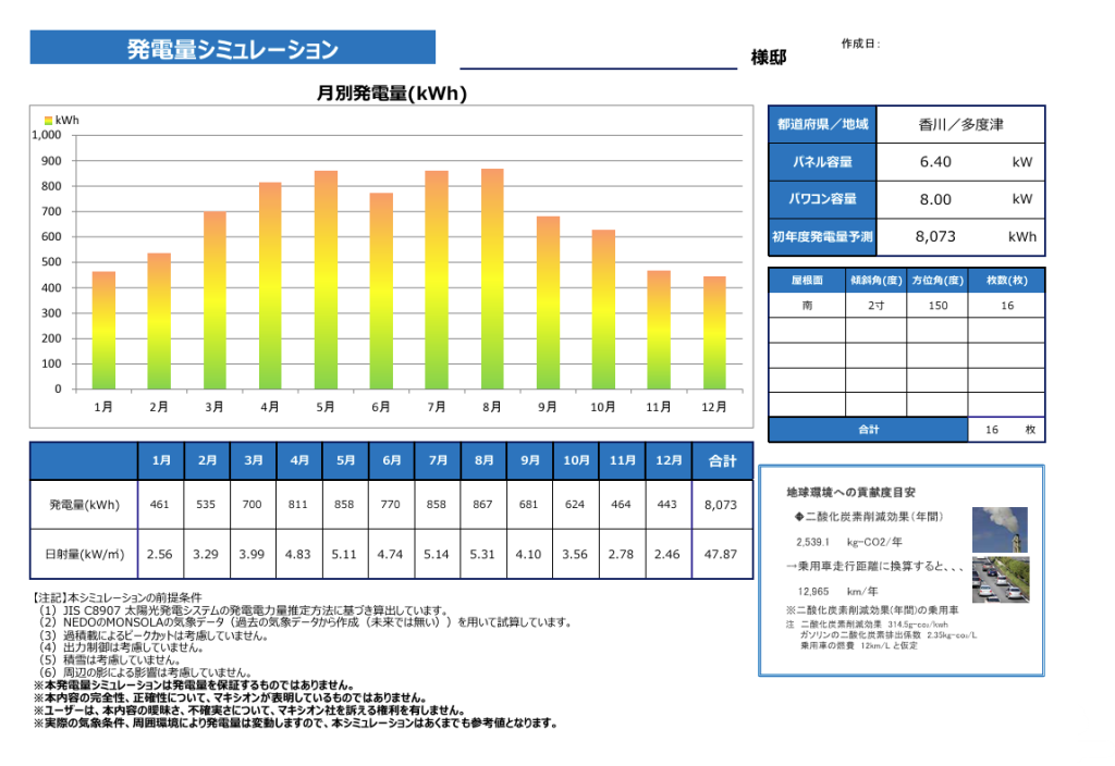 立地条件に沿った発電シミュレーションもお出しします。