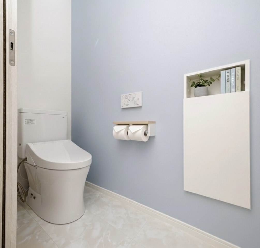• 明るく清潔感のある内装: 白を基調とした明るく開放的な室内に、色付きのドアやクロスをアクセントとして配置。部屋ごとに好みのデザインを際立たせられる内装です。