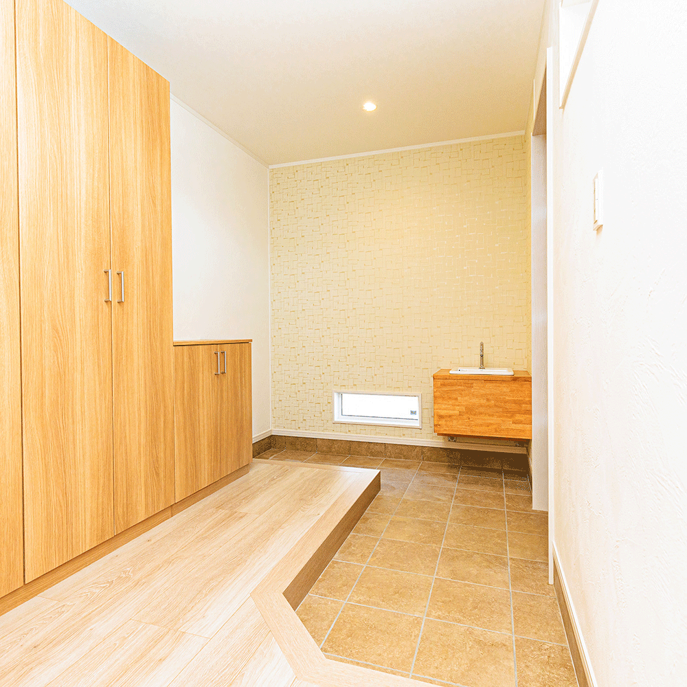 キッチン横にパントリーを配置したり、洗濯機横に洗濯物を畳むカウンターを作ったり。
