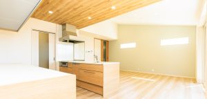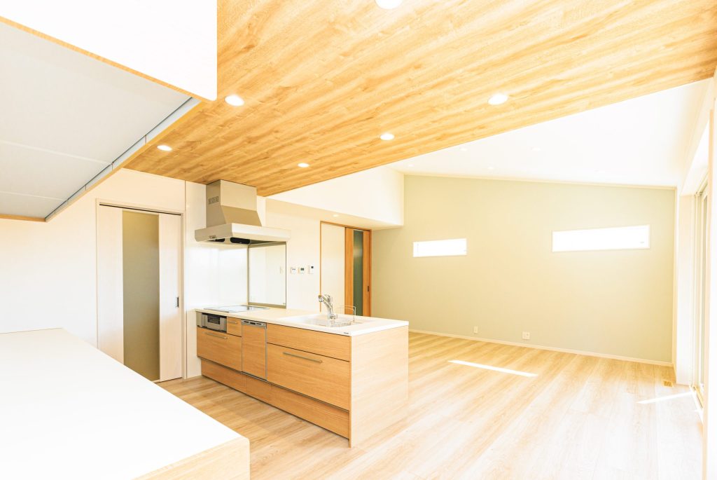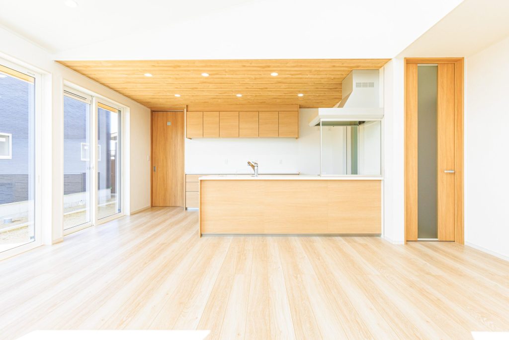 リビング扉をあけると、トイレ・洗面・各居室につながり一周できる平屋。